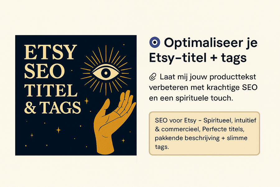 SEO-vriendelijke titel, beschrijving en tags voor jouw creatieve product of Etsy-shop.