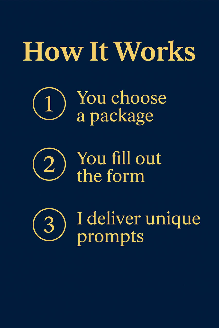 ✔️Kies een pakket✔️Vul het formulier in✔️Ontvang unieke prompts in
